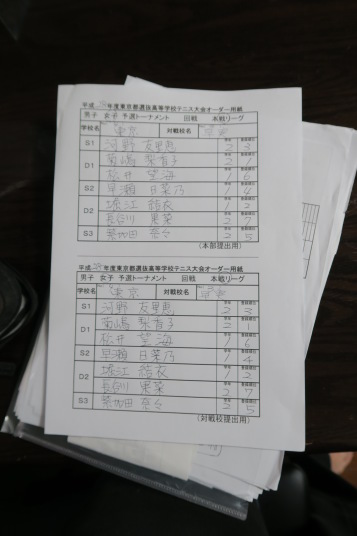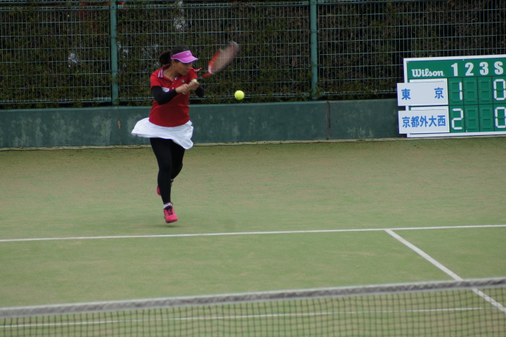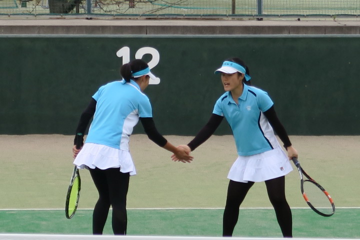S1:河野0-6、D1:菊嶋・松井6-0、S2:早瀬4-6、D2:長谷川・堀江6-2、S3:紫加田6-1